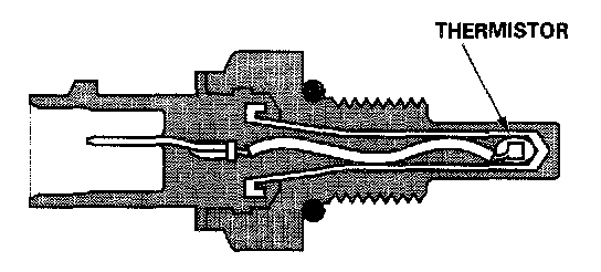 The ECT sensor is a temperature dependent resistor (thermistor). The resistance of the thermistor decreases as the engine coolant temperature increases.