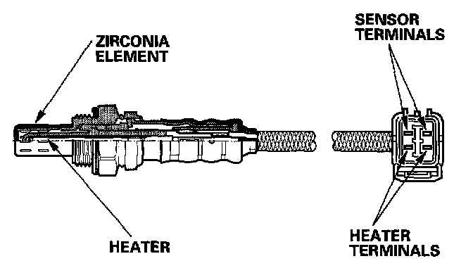 The secondary HO2S detects the oxygen content in the exhaust gas downstream of the warm up three way catalytic converter (WU-TWC), and sends signals to the PCM which varies the duration of fuel injection accordingly. To stabilize its output, the sensor has an internal heater. The PCM compares the HO2S output with the A/F sensor output to determine catalyst efficiency. The secondary HO2S is on the WU-TWC.