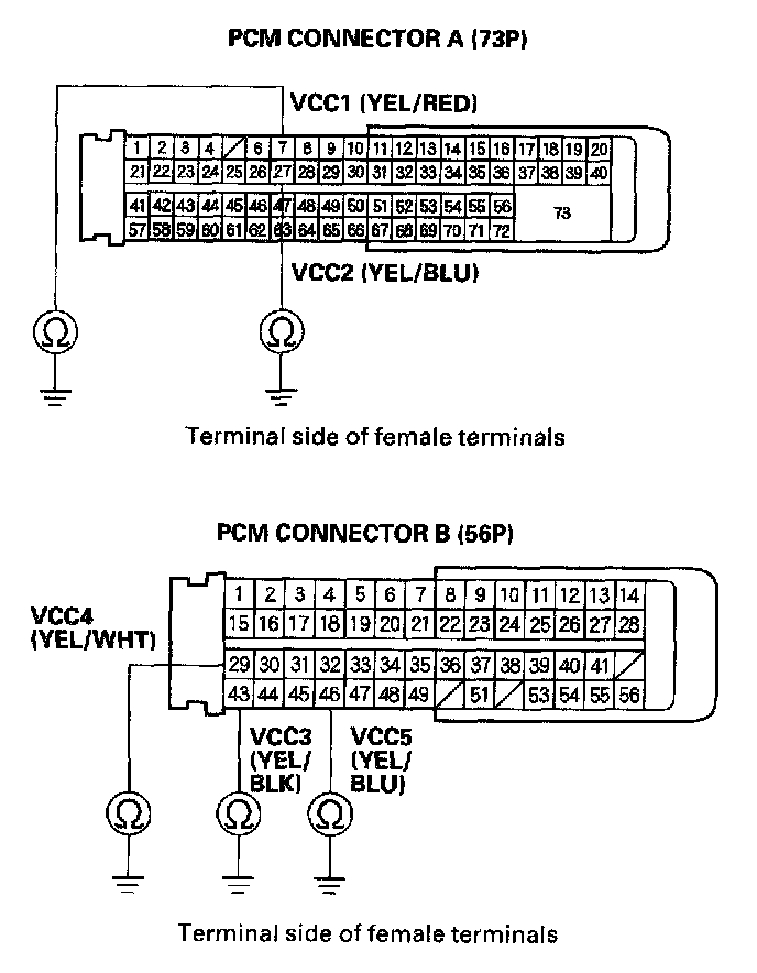 15. Disconnect PCM connectors A (73P) and B (56P).