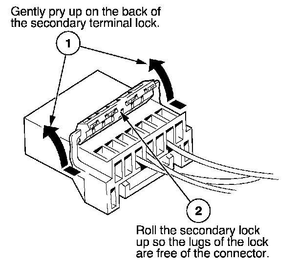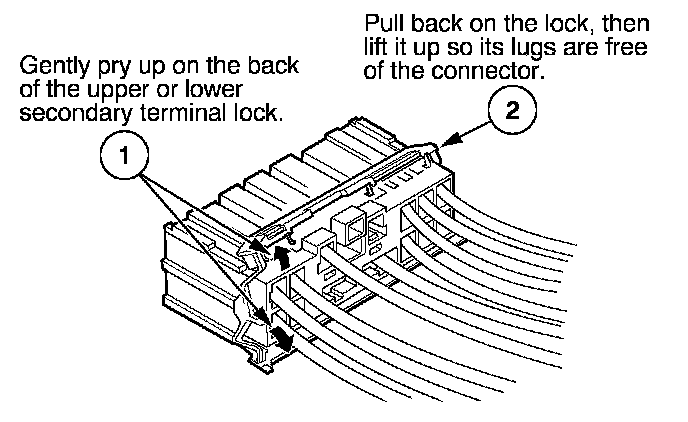 - If it has a secondary terminal lock, go to Connectors With a Secondary Lock. A secondary lock, found on most connectors on some models, is an additional locking device on the connector housing as a backup for the primary lock on the terminal.