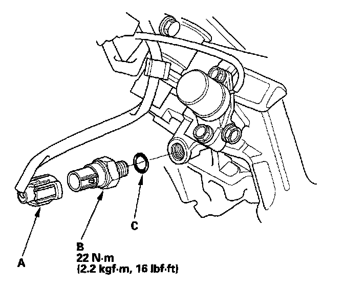 2. Install the switch in the reverse order of removal with a new O-ring (C).