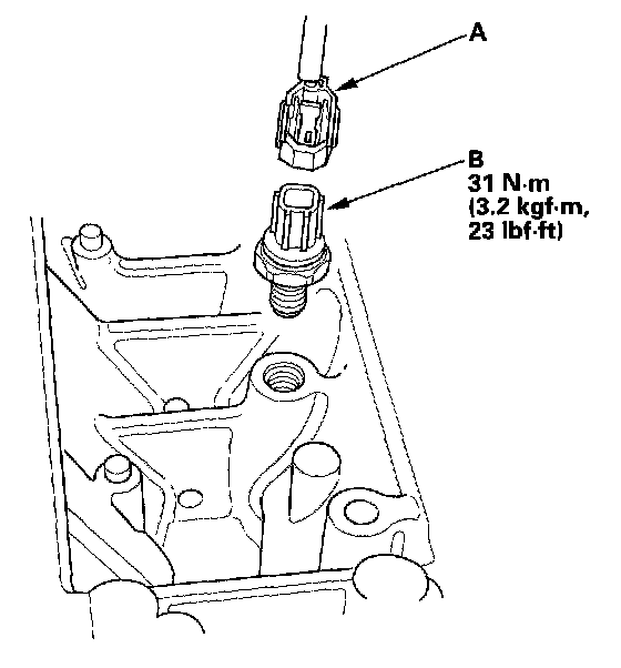 3. Disconnect the knock sensor 1P connector (A), then remove the knock sensor (B).