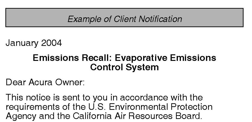 Emissions Recall: EVAP Control System