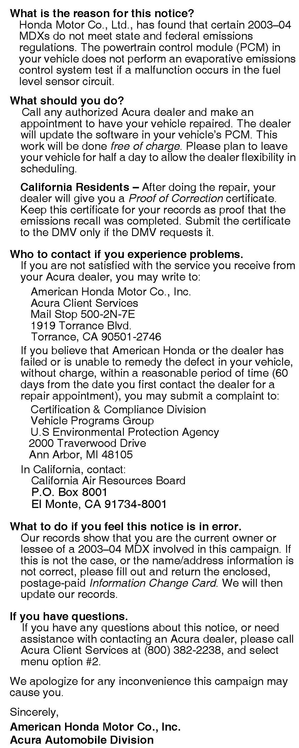2004 MDX - From VIN 2HNYD1...4H500001 thru 2HNYD1...4H509577