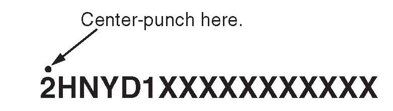 4. Center-punch a completion mark above the first character of the engine compartment VIN.