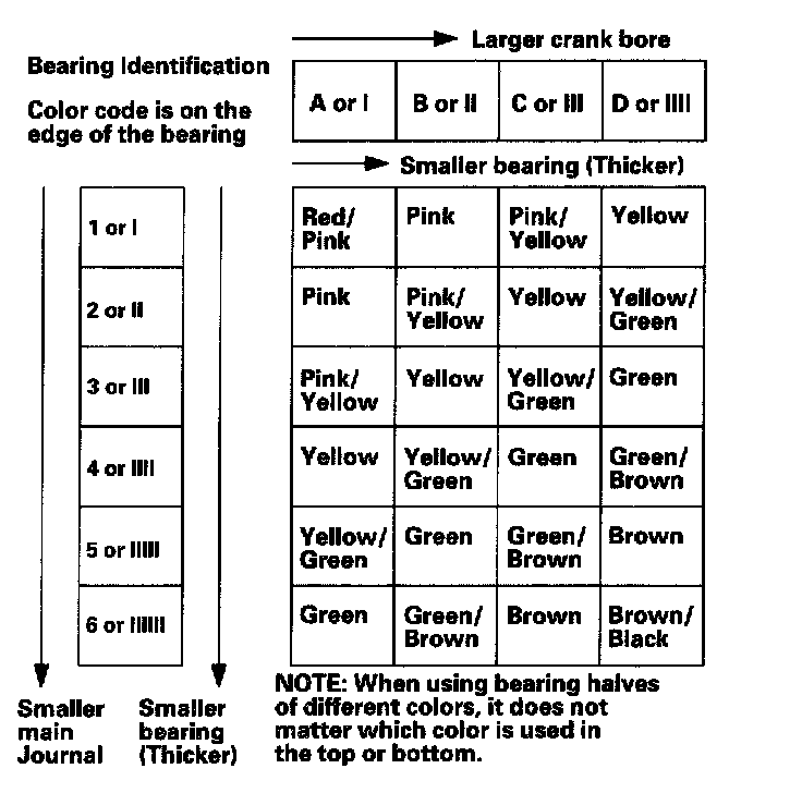 Use them, and the numbers stamped on the crankshaft (codes for main journal size), to choose the correct bearings. If the codes are indecipherable because of an accumulation of dirt and dust, do not scrub them with a wire brush or scraper. Clean them only with solvent or detergent.