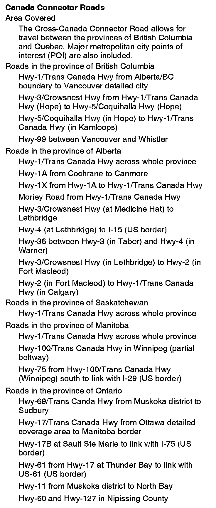 The map database is stored on a Digital Versatile Disc (DVD) located in the navigation control unit. The database covers the 45 contiguous U.S. states and Canada.Map Types