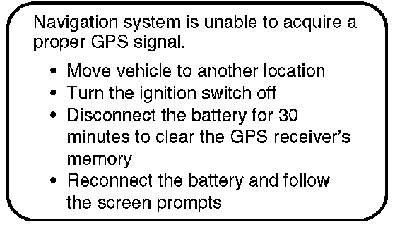 The initialization screen may appear after battery voltage to the navigation control unit has been disconnected for more than 5 minutes. If this occurs, follow the on-screen instructions. If you are still unable to obtain GPS initialization, refer to the Navigation section of the service manual for diagnostic information.