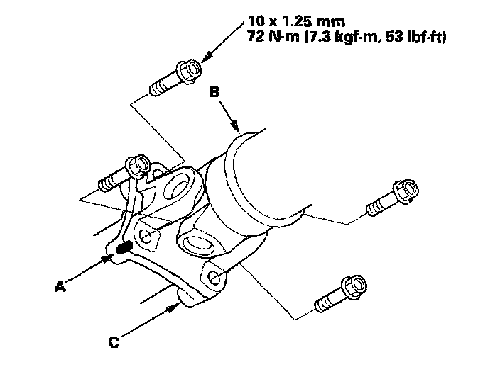 3. Make a reference mark (A) across the propeller shaft (B) and the transfer companion flange (C).