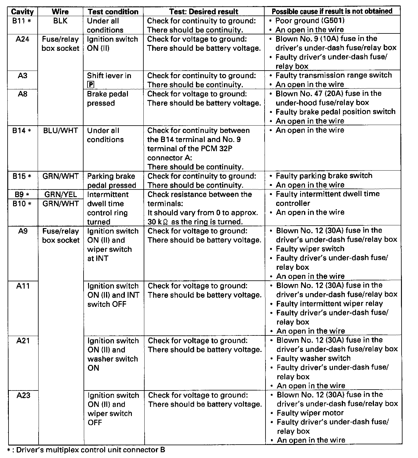 1. Before testing the wiper/washer control functions, troubleshoot the multiplex control system.
