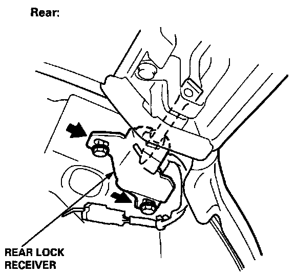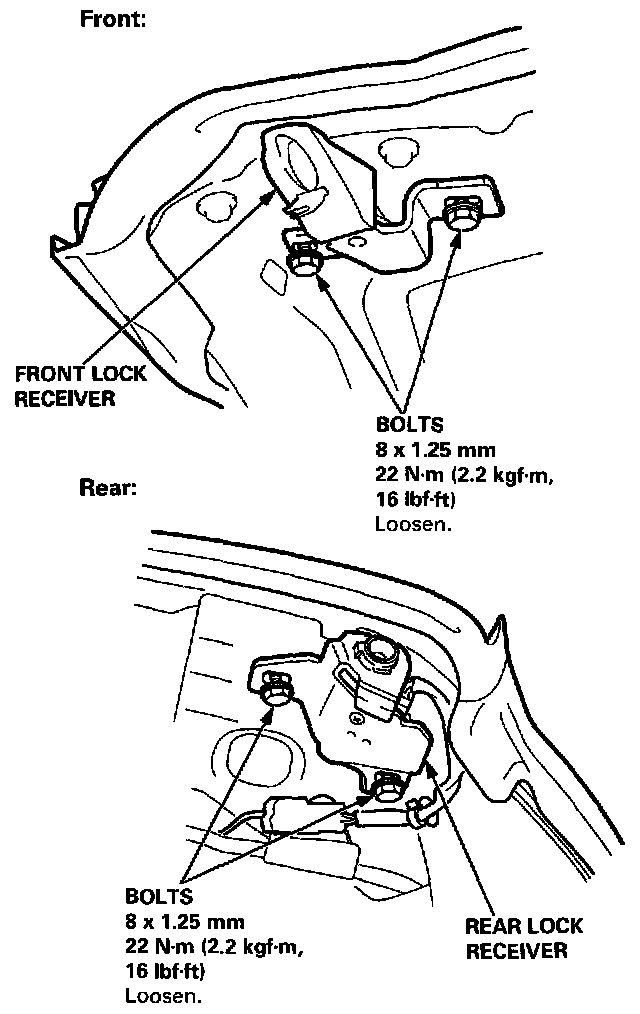 12. Tighten the roof side lock unit mounting nuts and lock receiver mounting bolts.