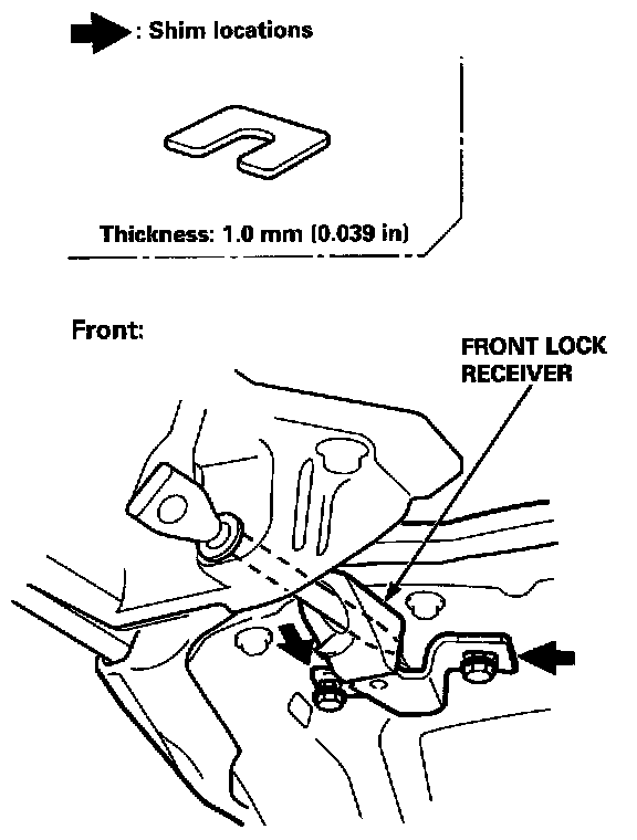If necessary, loosen the lock receiver mounting bolts, then adjust the height of the roof to make the roof fit flush with the body by using shims.