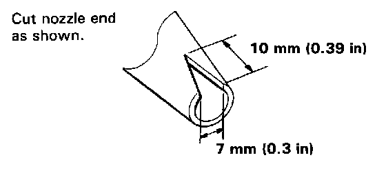 8. Before filling a cartridge, cut the end of the nozzle as shown.