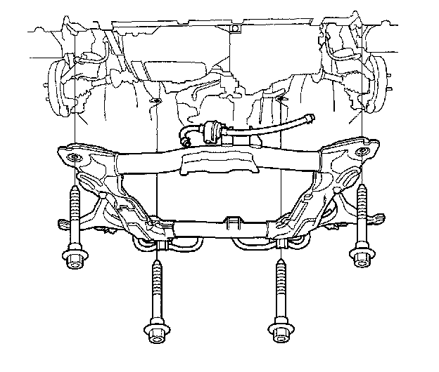 33. Remove the four sub-frame mounting bolts, then lower the sub-frame.