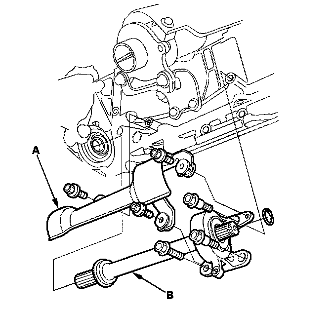 11. Disconnect the countershaft speed sensor connector (A) and mainshaft speed sensor (B).
