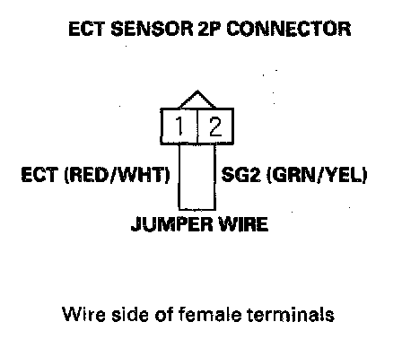 5. Connect ECT sensor 2P connector terminals No.1 and No.2 with a jumper wire.