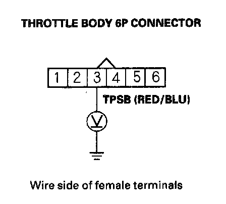 5. Measure voltage between throttle body 6P connector terminal No.3 and body ground.