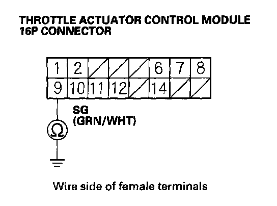 NO - Repair open in the wire between the throttle body and the throttle actuator control module (SG line), then go to step 18.