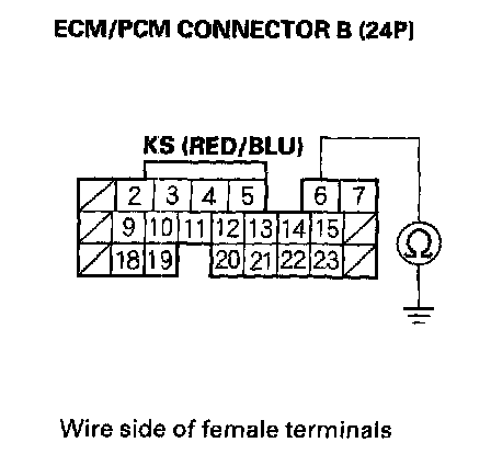 12. Check for continuity between ECM/PCM connector terminal B6 and body ground.