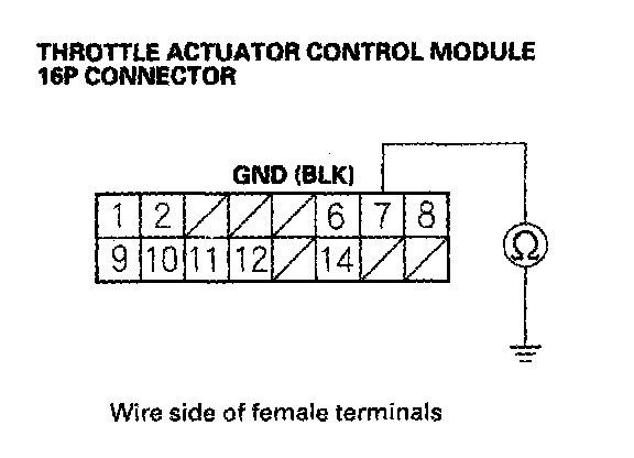 15. Check for continuity between throttle actuator control module 16P connector terminal No.7 and body ground.