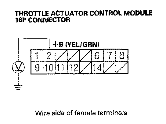 17. Measure voltage between throttle actuator control module relay terminal No.1 and body ground.
