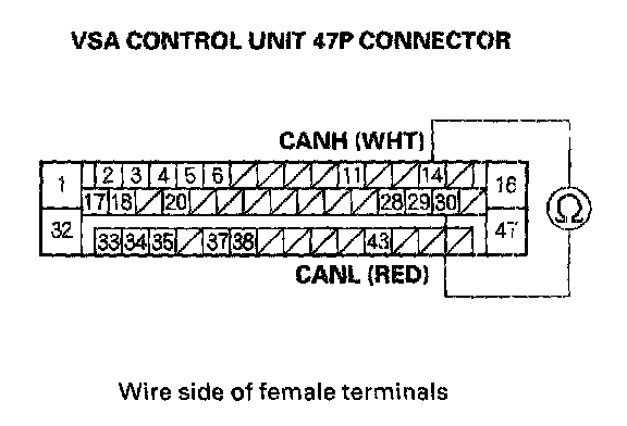 7. Check for continuity between VSA control unit 47P connector terminals No.14 and No.30.