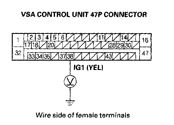 12. Measure voltage between VSA control unit 47P connector terminal No.38 and body ground.
