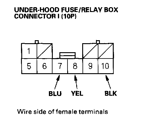 2. Disconnect the 10P connector (A) from the under -hood fuse/relay box (B).