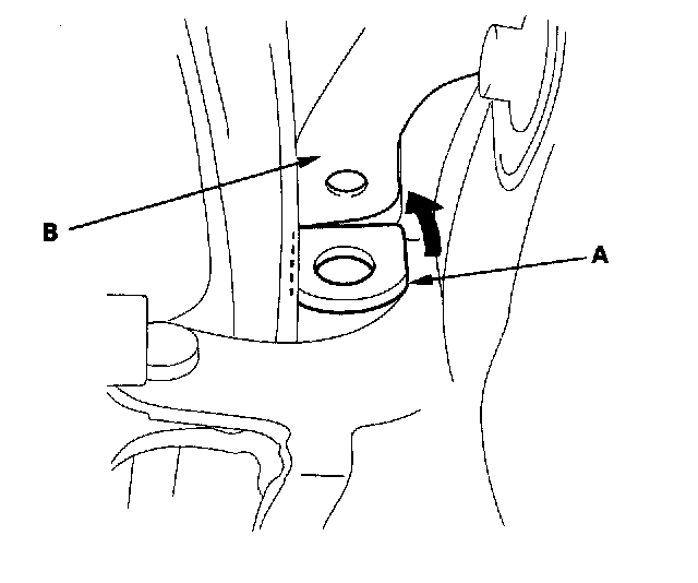 - Before installing the clips in the door opening area, install the front fender fairing (A) to the front fender (B) properly as shown.