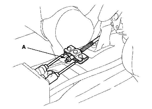 7. Tighten the adjusting nut (A) until the parking brakes drag slightly when the rear wheels are turned.