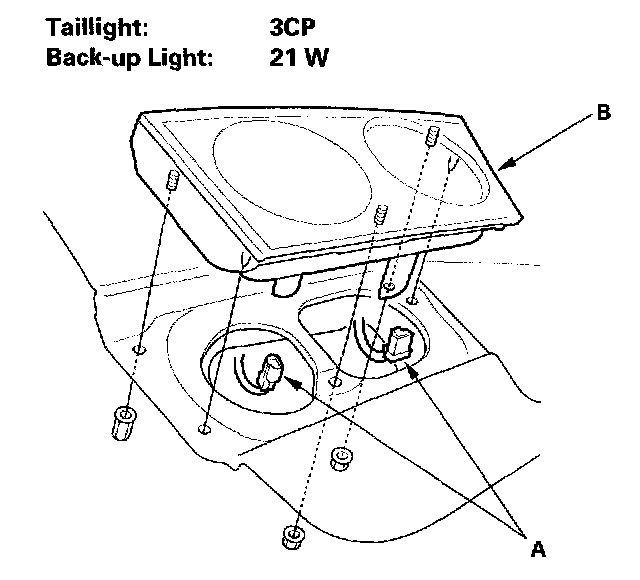 2. Remove the three nuts and the inner taillight (B).