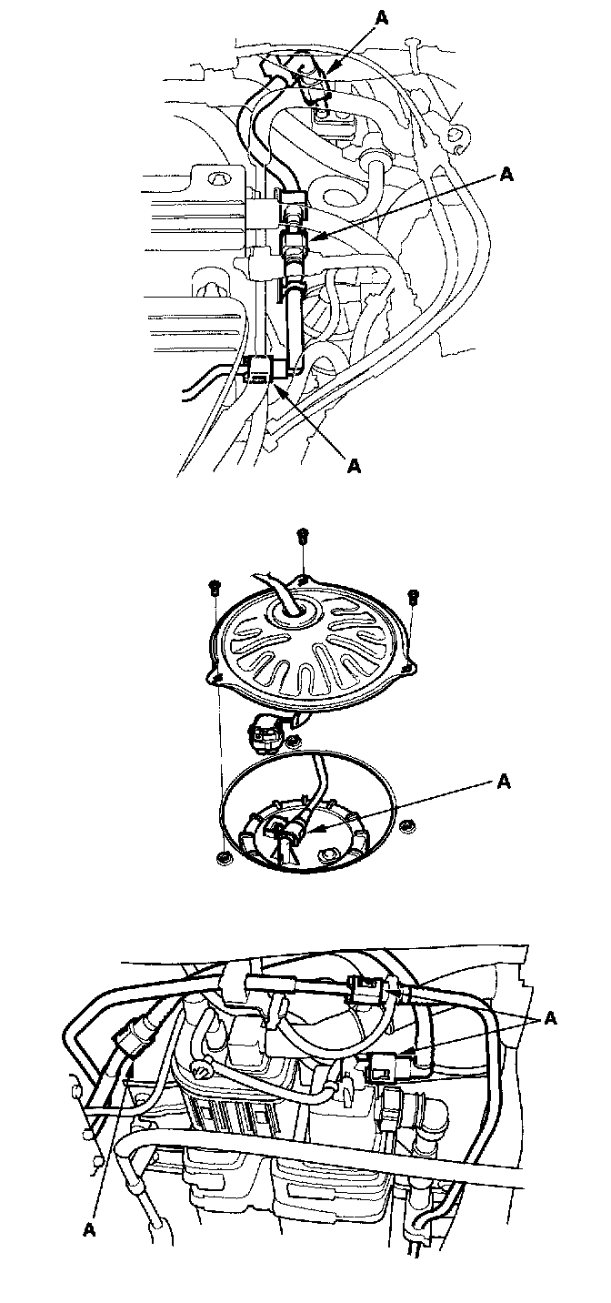 6. Reconnect the negative cable to the battery, and turn the ignition switch ON (II) (but do not operate the starter motor). The fuel pump will run for about 2 seconds, and fuel pressure will rise. Repeat two or three times, and check that there is no leakage in the fuel supply system.