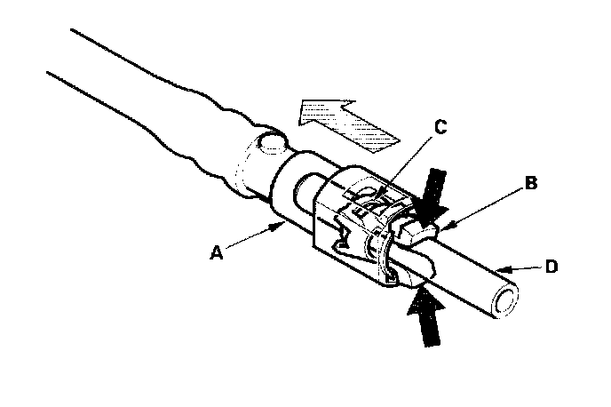 3. Before connecting a new fuel tube/quick-connect fitting assembly (A), remove the old retainer from the mating line.