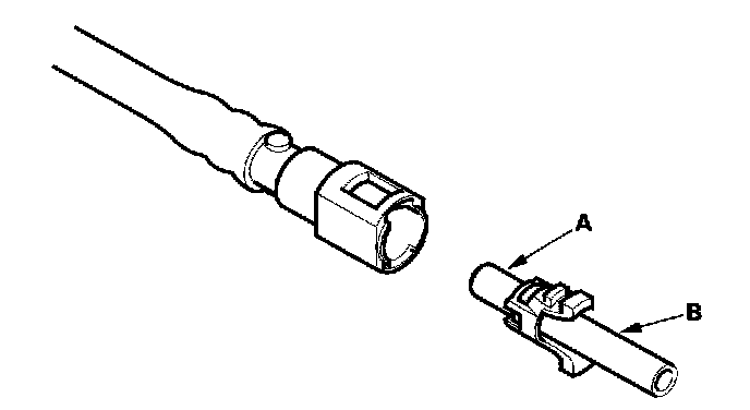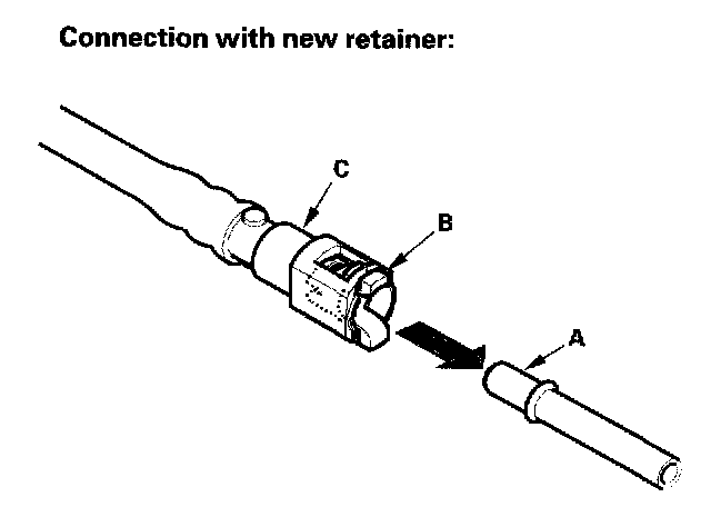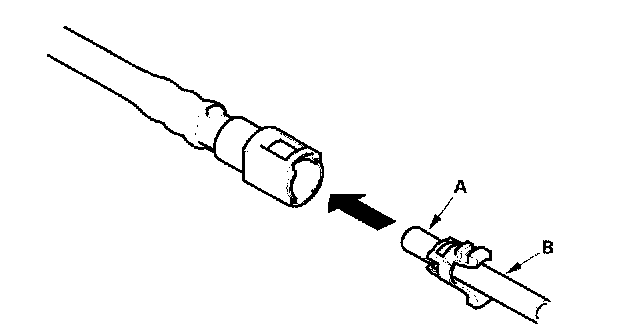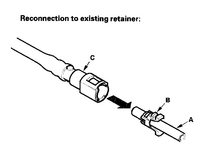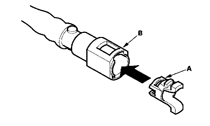 2. Insert a new retainer (A) into the connector (B) if the retainer is damaged, or after