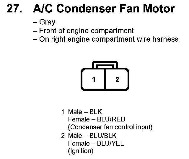 27. A/C Condenser Fan Motor: