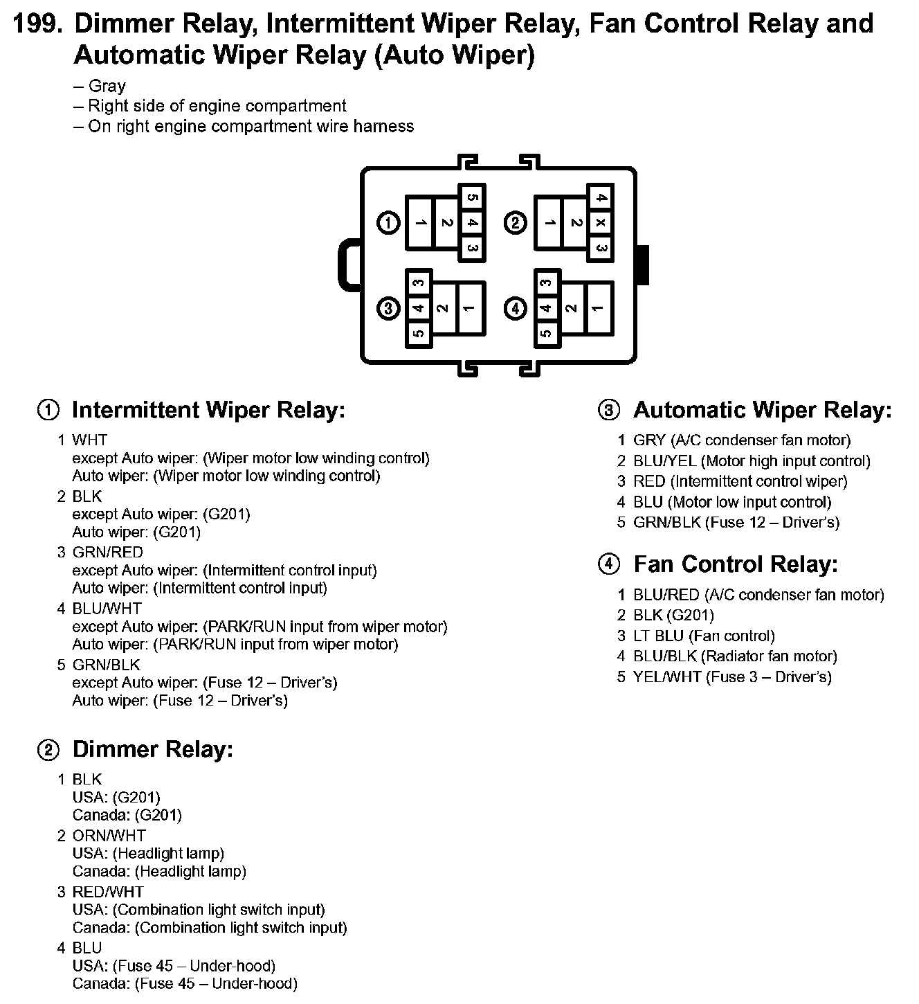 199. Dimmer Relay, Intermittent Wiper Relay, Fan Control Relay And Automatic Wiper Relay (Auto Wiper) 199. Dimmer Relay, Intermittent Dimmer Relay, Intermittent Wiper Relay, Fan Control Relay And Automatic Wiper Relay (Auto Wiper):