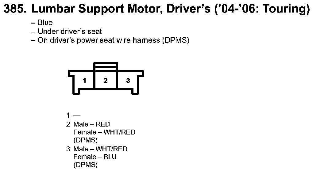 385. Lumbar Support Motor, Driver's ('04-'06: Touring):