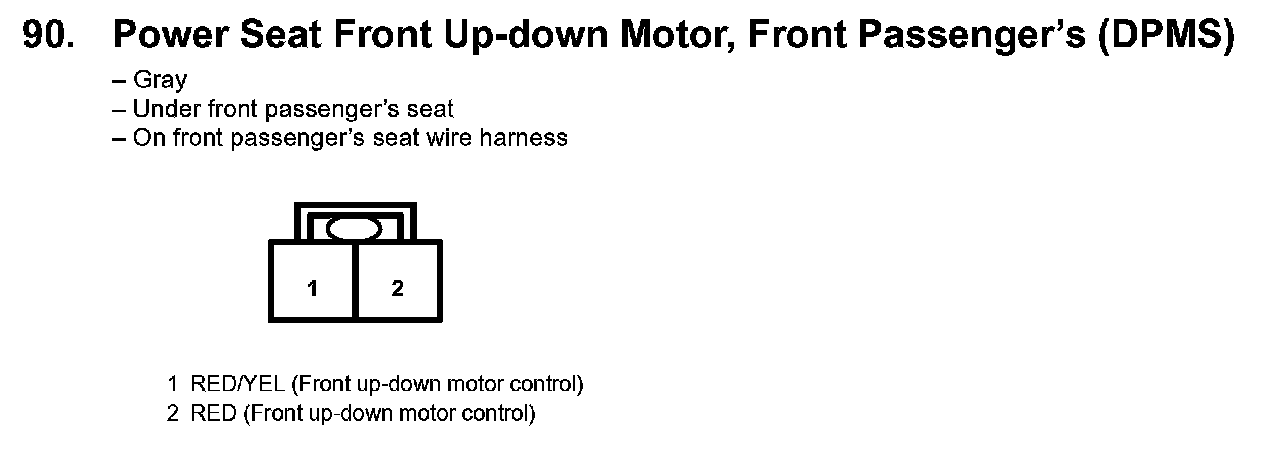 90. Power Seat Front Up-down Motor, Front Passenger's (DPMS):