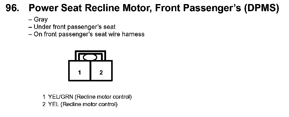96. Power Seat Recline Motor, Front Passenger's (DPMS):
