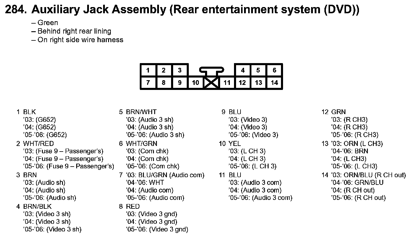 284. Auxiliary Jack Assembly (Rear Entertainment System (DVD)):