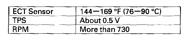 2. Check the engine coolant temperature, throttle position, and idle speed (use the HDS PGM-FI data list, if possible).