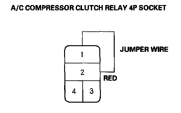 5. Connect the No. 1 and No. 2 terminals of the A/C compressor clutch relay 4P socket with a jumper wire.