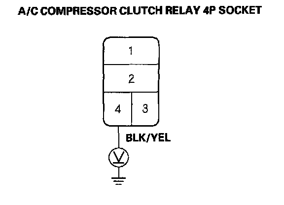 4. Measure the voltage between the No.1 terminal of the A/C compressor clutch relay 4P socket and body ground.