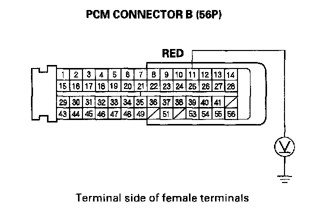 16. Measure the voltage between the No. 11 terminal of PCM connector B (56P) and body ground.