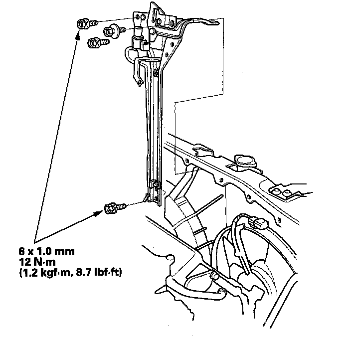 20. Install the bulkhead bracket in the reverse order of removal. Apply body paint to the bulkhead bracket mounting bolts.