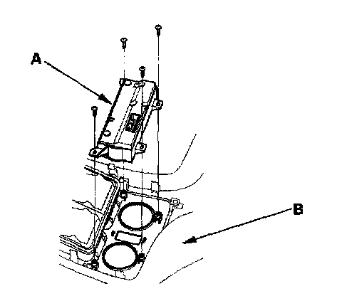 2. Remove the self-tapping screws and the rear heater-A/C control unit (A) from the console rear trim (B).