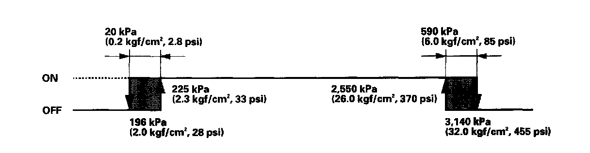 If the refrigerant pressure goes above or below 1,520 kPa (15.5 kgf/sq.cm, 220 psi), the A/C pressure switch opens or closes to signal the PCM to change the speed of the A/C condenser fan and radiator fan (high-low).