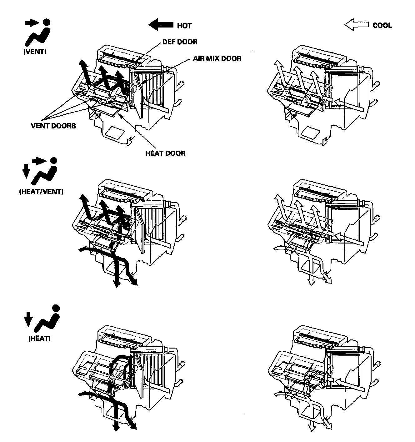 System DescriptionThe air conditioning system removes heat from the passenger compartment by circulating refrigerant through the system as shown.