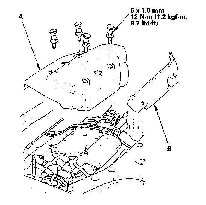 Ignition Coil Removal/Installation1. Remove the intake manifold cover (A) and ignition coil cover (B).