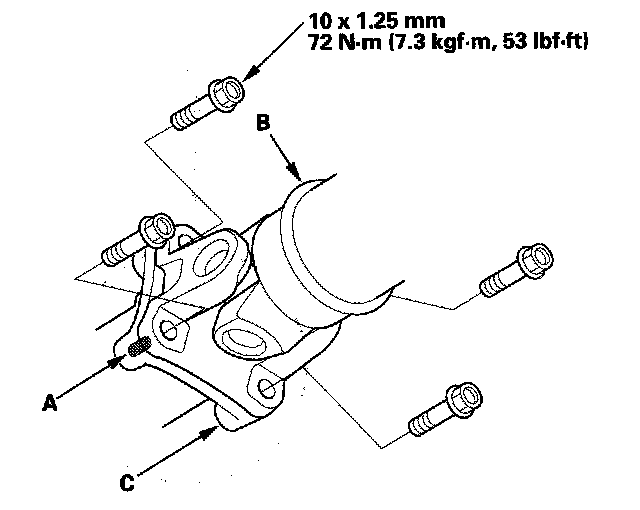 3. Make a reference mark (A) across the propeller shaft (B) and the transfer companion flange (C).